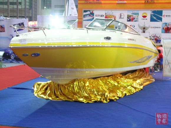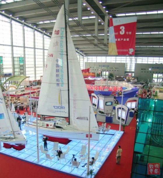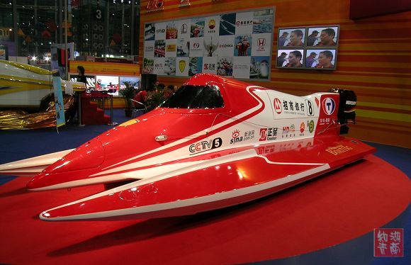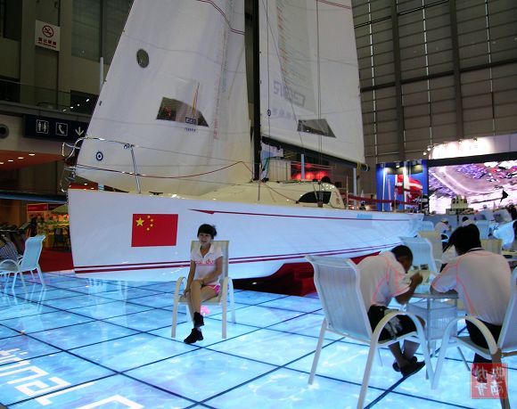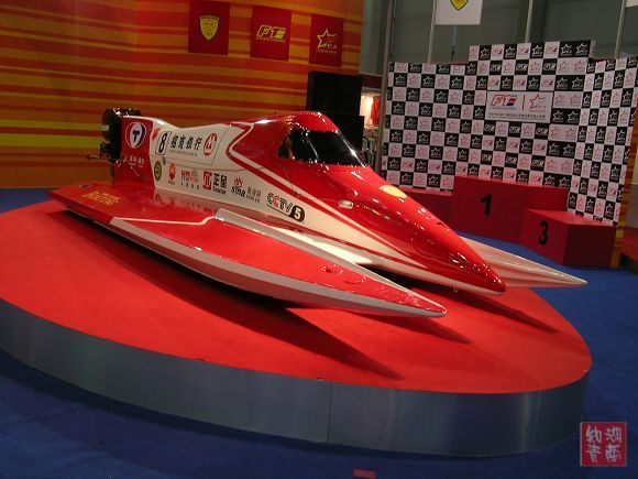 3号馆是体育产业馆。是本届文博会新增加的一个展馆,里面的帆船、F1摩托赛艇、自行车竞速、高尔夫、拉力赛车……吸引了众多人的目光,F1摩托艇边还有模特小姐助阵。