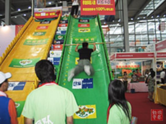还有攀岩等竞技体育项目让观众参与互动,更使展馆里充满活力,洋溢着欢声笑语。