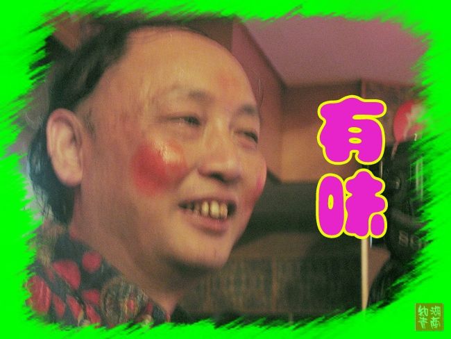 远远的看见一人穿着花大褂,脸上涂抹得丑丑的。赶忙把他装进镜头里,拉近按快门,仔细查看,原来是“笨牛”。 创意效果评价——十分搞笑。