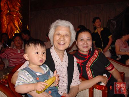 这是母、女、孙,左妈妈有四个儿女都是知青,現在家庭有七个知青,这是位值得尊敬的母亲,平凡而又伟大的母亲。