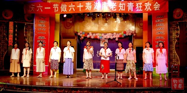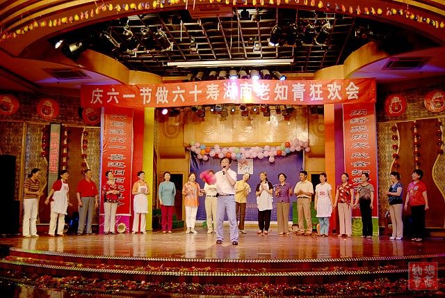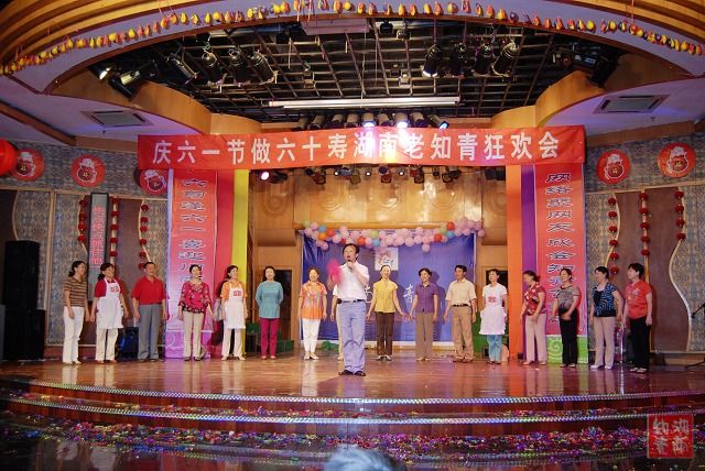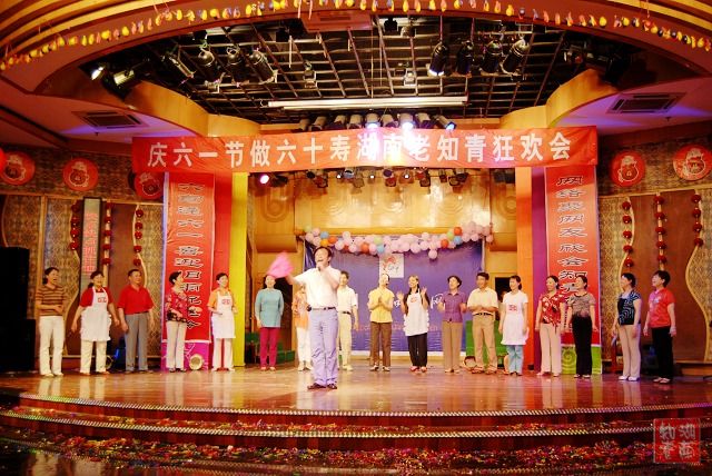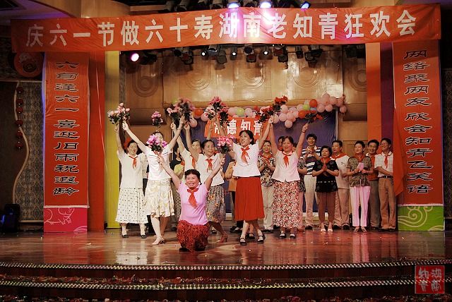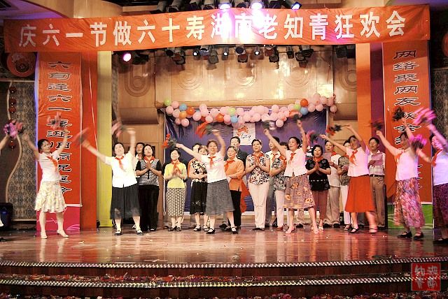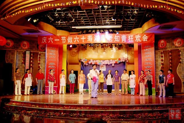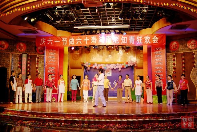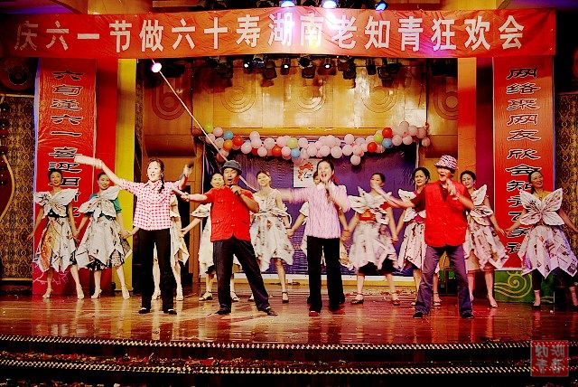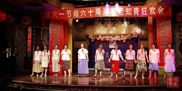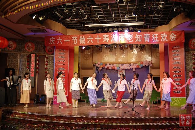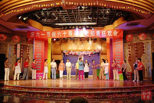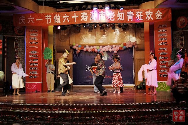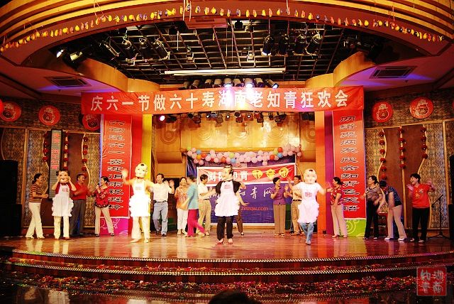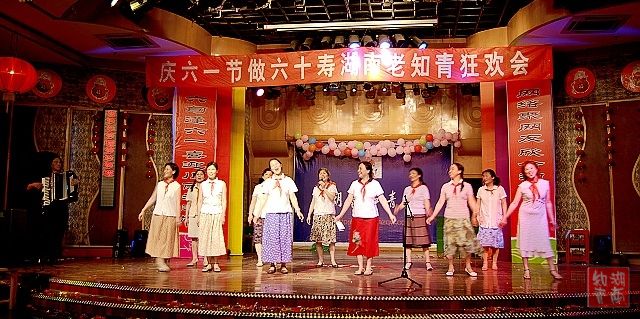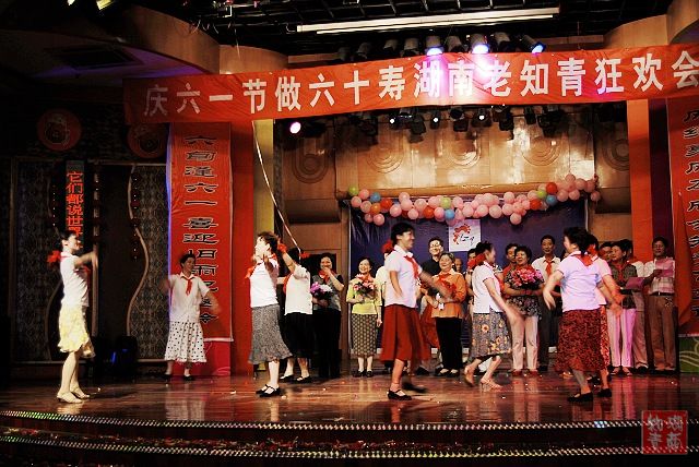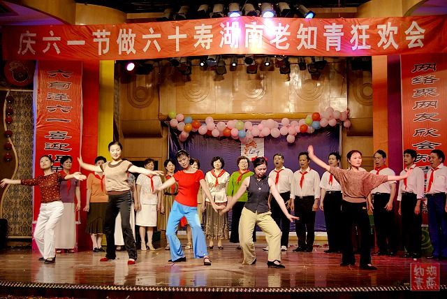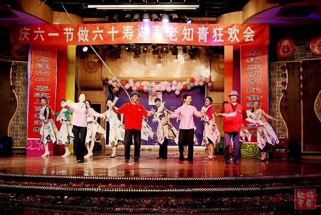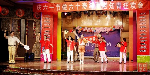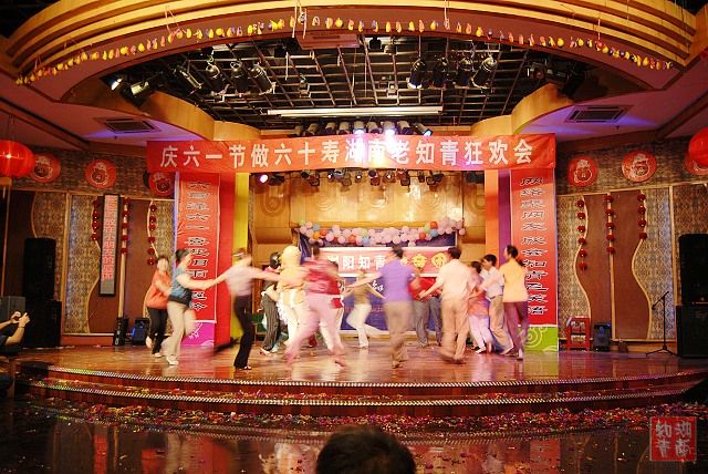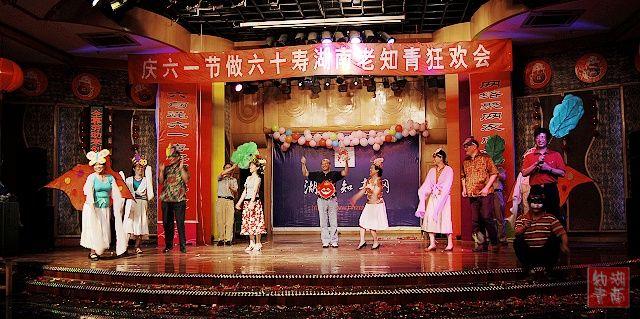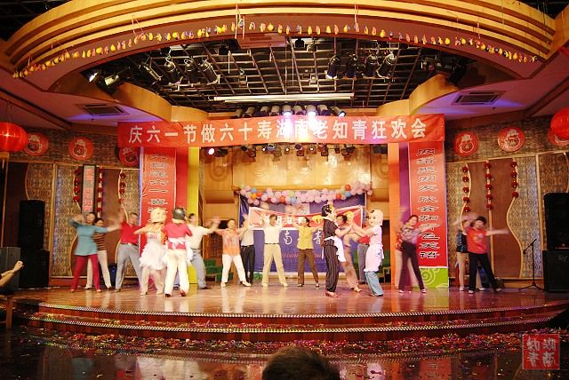 我一直沉浸在六一狂欢的幸福回忆里,八九十位花甲寿星手捧蛋糕,点燃进入二春的蜡烛,接受98岁父亲和八旬老妈的生日祝福;精彩的经典儿歌回顾表演,使我们都忘掉了生理年龄;那脍炙人口的童谣,将我们带回那遥远的年代;当年的语文、算术、体育课,我们又上了一回;全场接龙舞,让我们汇聚在狂欢的海洋......我来不及思索,只有一顿乱拍,记录下这一生难逢的欢乐时刻,让没有到会的新朋老友、知青兄弟姐妹分享!