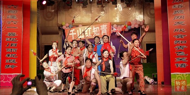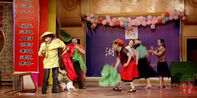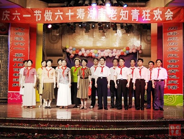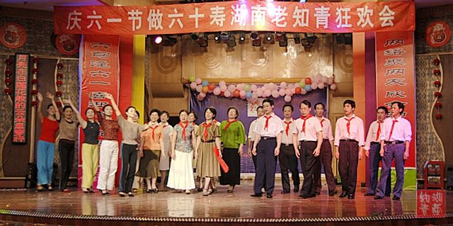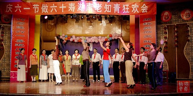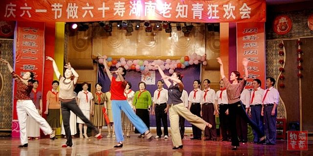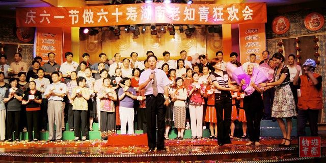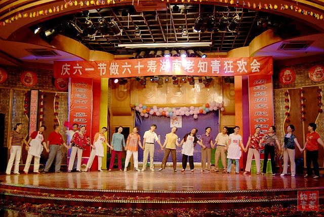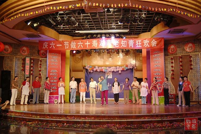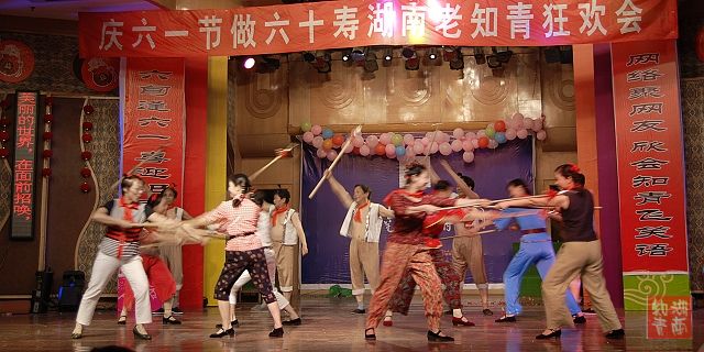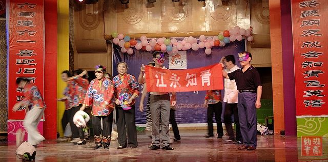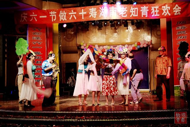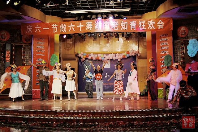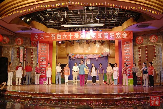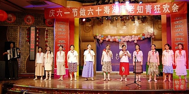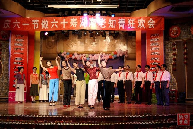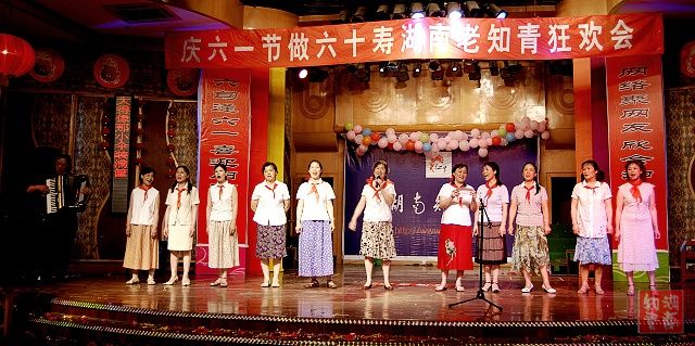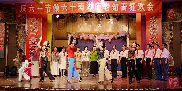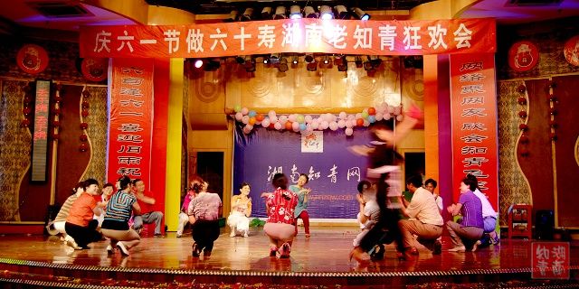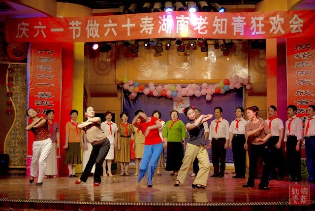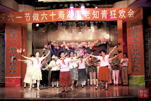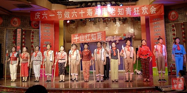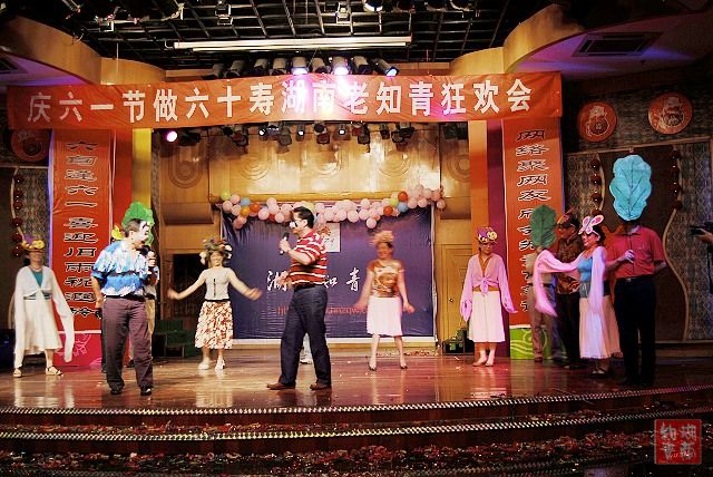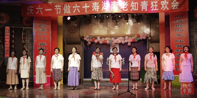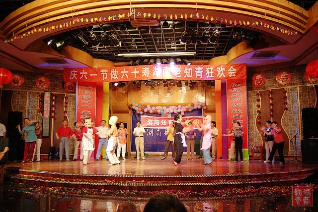 我一直沉浸在六一狂欢的幸福回忆里,八九十位花甲寿星手捧蛋糕,点燃进入二春的蜡烛,接受98岁父亲和八旬老妈的生日祝福;精彩的经典儿歌回顾表演,使我们都忘掉了生理年龄;那脍炙人口的童谣,将我们带回那遥远的年代;当年的语文、算术、体育课,我们又上了一回;全场接龙舞,让我们汇聚在狂欢的海洋......我来不及思索,只有一顿乱拍,记录下这一生难逢的欢乐时刻,让没有到会的新朋老友、知青兄弟姐妹分享!