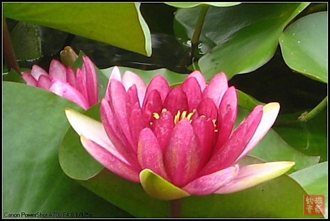 晓峰、淡泊人生拍了许多美丽的睡莲,可我一直没找到地方,今天正好碰到了,連忙掏出相机一顿拍哒。现在睡莲不多了,稀稀拉拉的加之摄技又不好,远没有晓峰、淡泊人生拍的好看。不过此花本身有姿色,照出来也不很难看。睡莲是花、叶俱美的观赏植物。古希腊、罗马最初敬为女神供奉,16世纪意大利的公园多用来装饰喷泉池或点缀厅堂外景。现欧美园林中选用睡莲作水景主题材料极为普遍。我国在2000年前汉代私家园林中,已有应用,如博陆侯霍光园中的五色睡莲池。睡莲的根能吸收水中的铅、汞及苯酚等有毒物质,还能过滤水中的微生物,故有良好的净化污水作用。根茎富含淀粉,可食用或酿酒。全草宜作绿肥,又可入药。