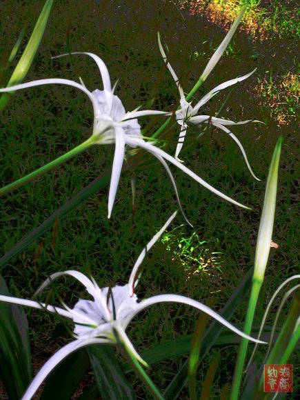 “这就是文殊兰。”一位老人指着路边一片开着白花的绿色植物告诉我。