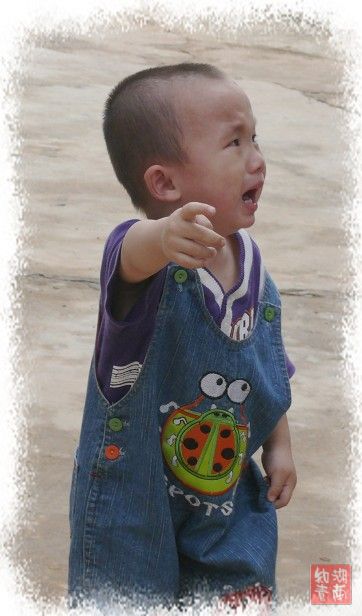 哈哈!他看到我的像机感兴趣啦,不给就耍赖,手指着我,拼命的哭。嘿嘿!哭也不能给呀,我乐着赶紧给他照张“哭脸巴”做纪念。
