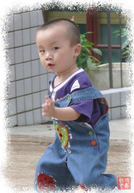 这是同事的小孙孙,叫壮壮。不到两岁,还只会说自创的语言——“嗲吧”,那是谁也听不懂的。长的可爱极了。趁他出来玩耍,咱也练练手艺。
