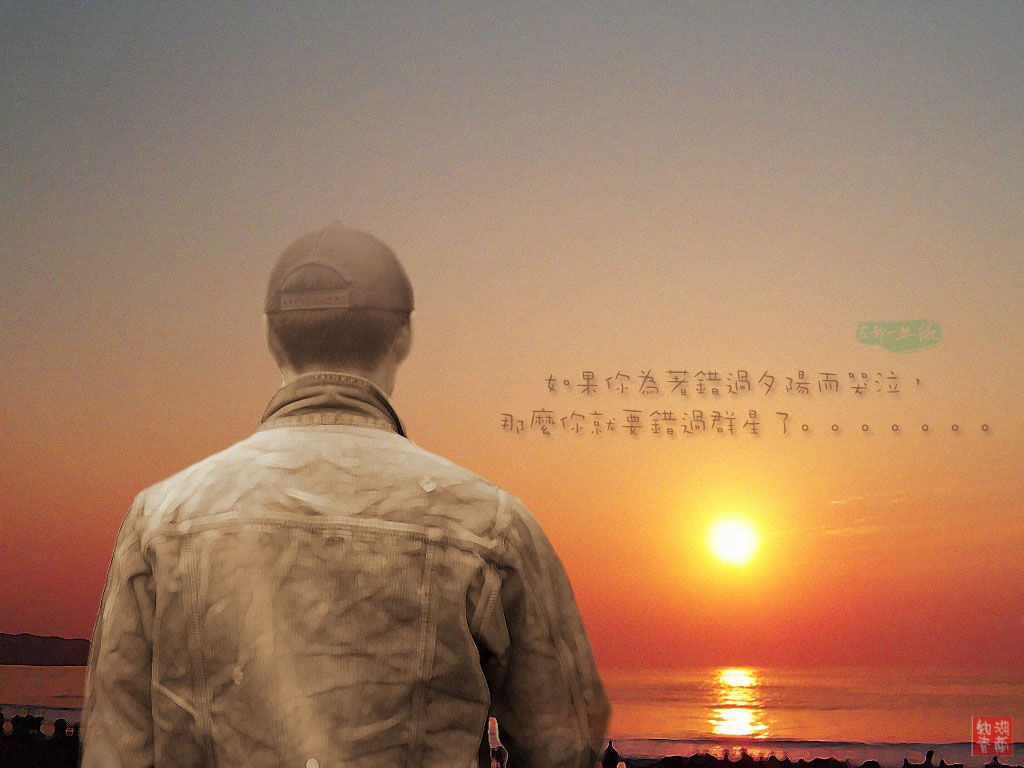 红日将尽 斜阳何往群集的人潮 分散向各自的方向夕幕时分 华灯将上人车杂沓间 唯醒者不寐衷肠日升日落往复起 知生有涯相聚挥别一程程 情路无常酣恬得意与落寞 交替袭身黑夜旅途 我抵达欲前往的门廊扪心自问 此处可是你同样的归航红日将尽 心潮浮漾如海的莫测 万点鳞光你可知在这之后我将永恒坚守梦想就算逐日无涯也不放弃那唯一的方向