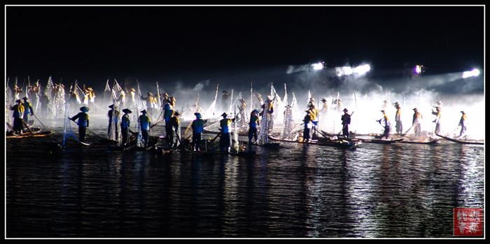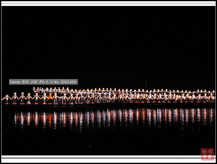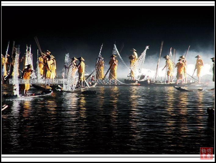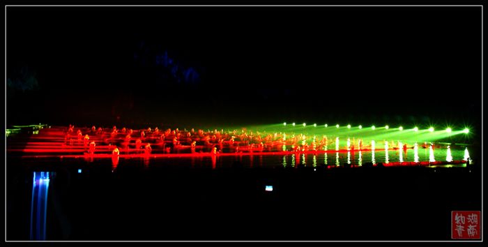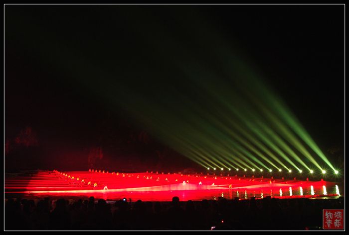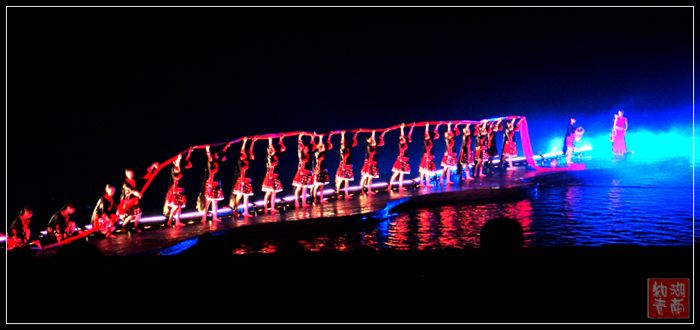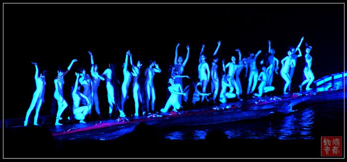 迷人的场景,真是晚去不如早去.据说这个场景遭到了有关部门的炮轰,后被取消,我们只能看见到现在的"文明场景",但整场戏的真正完美已不复存在,恭贺你早一步看到了张艺谋的原创大戏