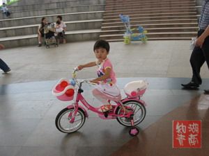 小妹妹骑着红色小跑车好漂亮哦.