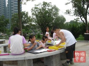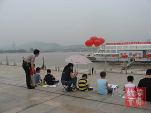 画着端午水,还有妈妈在一边打着伞遮阳哦.