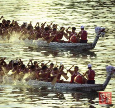 河里赛龙船。