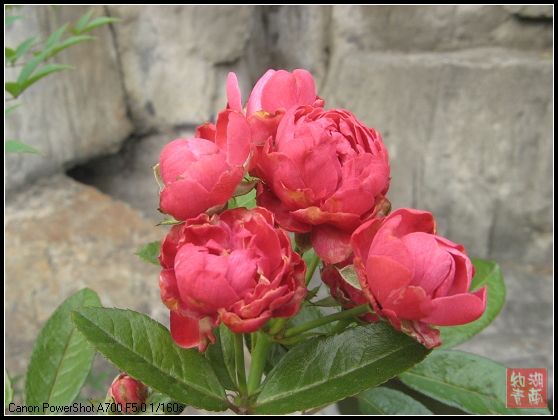 走过一假山,看见石头縫里居然长出一束红艳艳的花。那顽强的生命力震憾了我,也感染着我。