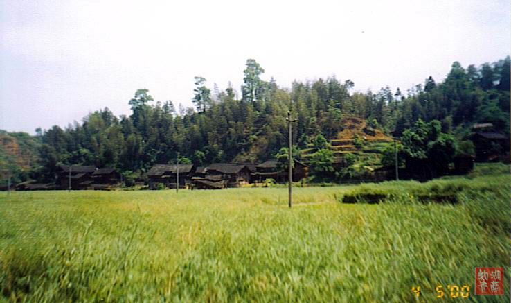 [贴图]当年我就下在这个队,叫“老屋场”生产队。这是二千年五月,时过三十年后再去拍的,从远处看只多了二根电杆和几栋房子外,再就是那山上的树几乎没有了,其它的依然如旧。