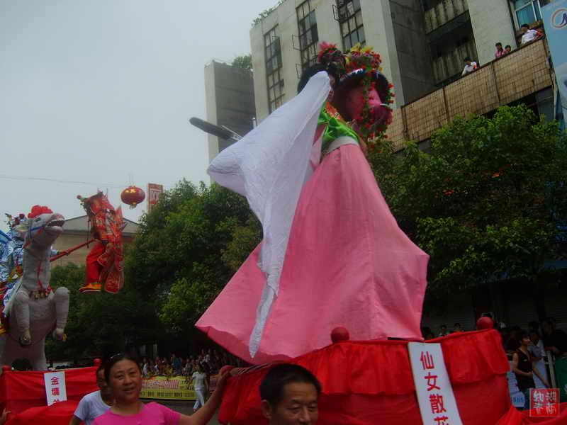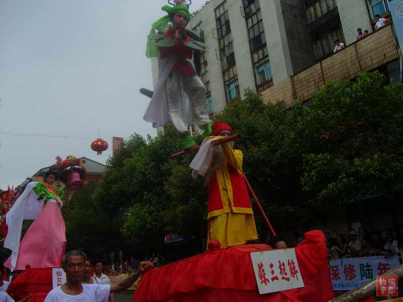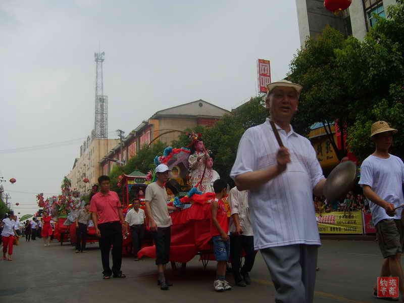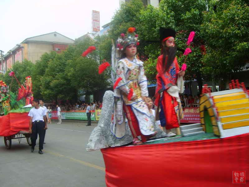 当先一面长乐故事会的大旗开路,紧接着是站立在骚坛亭前的爱国诗人屈原。