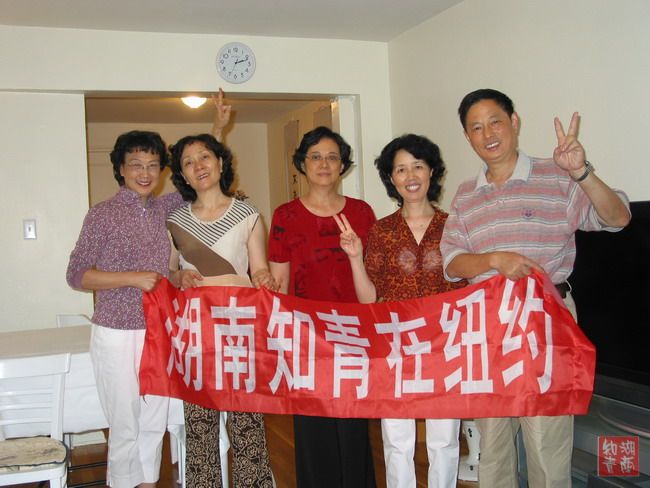 这一两天主要是和一些老熟人见见面,首先最值得要见的是一位老人,我们叫她方妈妈,已经八十多,德高望重,见到她真高兴,他精神好,气色佳,我带了我们湖南知青在纽约的条幅,他也高兴的和我们一起合影,他原来参加过远征军,又嫁给一个洋人,所以他的经历使得他在文革 中遭到批斗,他信基督教,一生尽做好事,他今天讲,当年他遭批斗是他是念着毛主席语录上台去的,谁是我们的敌人,谁是我们的朋友,这个问题一定要搞清楚。。。听了我们都忍不住笑出来声,当年的酸心事,今天是笑料。