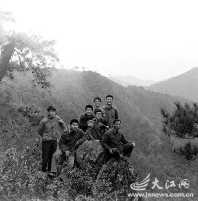 | | 1973年重阳节,山香村的上海知青一起爬信丰笔架山时的留影,其中站的最高的那位是陈竺 |