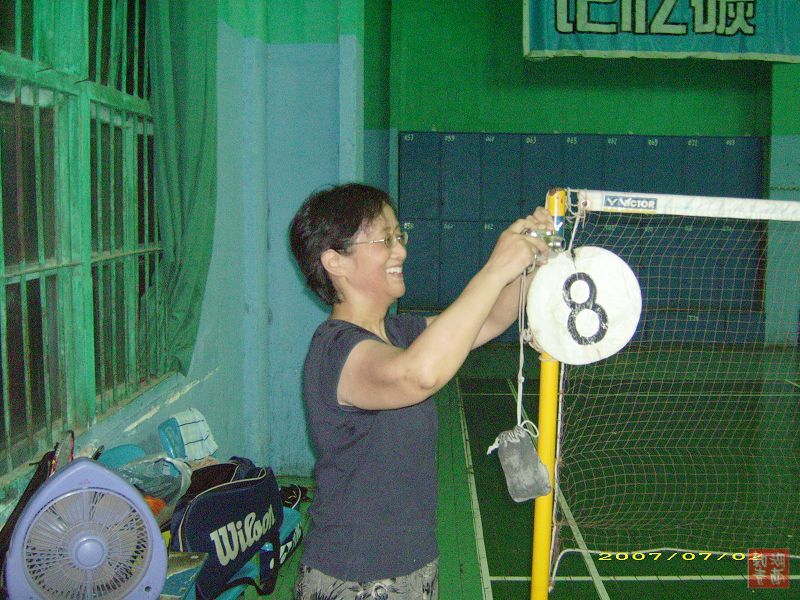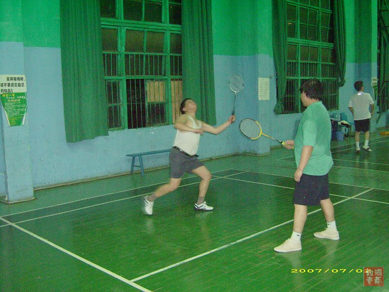 本“运动员”为了弥补第一次训练旷课所欠下的练球任务,特别以实际行动作出较好表现,当日中午下班买了服装洗好晾干,下午六点穿上象样的运动装行头,从家里出发,得意潇洒招摇过市,直奔训练场(哈哈,难改自由散漫的毛病,途中拐了个弯,走了会儿亲戚),到训练场又迟到了一下下子。