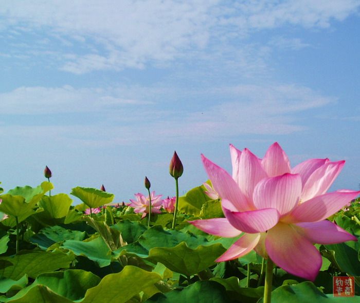 立立我很喜欢这张照片。兰天白云下的荷花更加娇媚,整个画面漂亮!