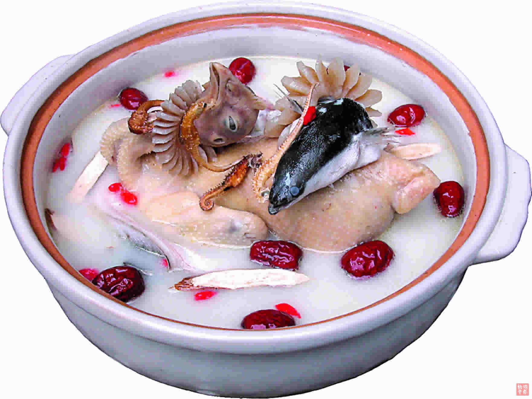 3、乌鸡三七参汤。乌鸡250克、三七10克、红参6克、生姜12克、红枣适量,将乌鸡肉洗净切块,三七打碎,红参、生姜切细、红枣去核,一同入砂锅内加清水适量,用武火煮沸后改用文火煮至鸡肉熟烂即可调味食用。此方有养血通窍、安神增智之功效,适用于头昏健忘、失眠多梦、耳鸣等症。