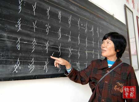 | 妇女们常将耳闻目睹社会上或历史上的重大事件,以及当地比较突出的人物,当作女书创作素材,写成作品,形成地方历史资料,成为读纸读扇的唱本。如《太平天国过永明》,记述了太平军到达江永上江圩的时间和活动。《解放歌》记下了上江圩从1949~1958年的历次政治运动,如“解放”、“反霸”、“土改”、“高级社”、“人民公社”等。 六、改写汉字韵文 在女书唱本中,有很大一类是汉字韵文的改写本,即将汉字韵文翻译成女书。被改写翻译的汉字韵文,一般都是以妇女为主角的作品,如《梁山伯与祝英台》、《肖氏女》、《卖花女》等,以资随时诵读。 |
