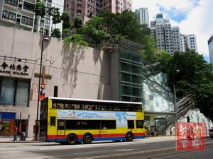 看双层巴士那边,是垂直登山电梯,住在山上高楼的市民可选择使用的上山工具哦。