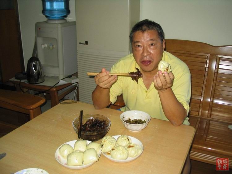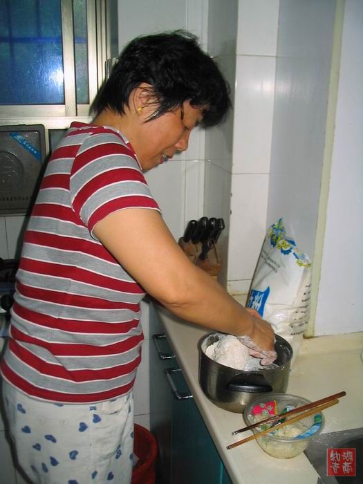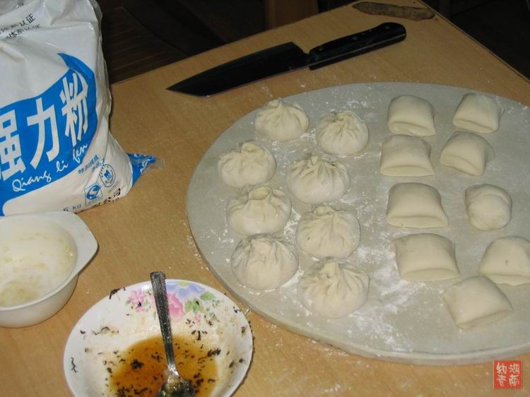 那天想吃真老面馒头了,于是到超市买了一碗甜酒,一包灰面,决心自己再做一回。甜酒加点水,和灰面,能够发酵,而且不需要放碱。第一次做,没成功,面和得太稀,发酵以后稀得拿不上手,只好加干灰面,结果冒蒸起来。今天总结了经验,用那天留下的老面发酵,面和得干,四个小时就发得蓬蓬的,稍稍放了一点食用碱,揉熟,做了馒头,还做了几个盐菜白糖包子。效果极好,馒头都蒸开了花!真正的老面馒头,味道就是不一般!