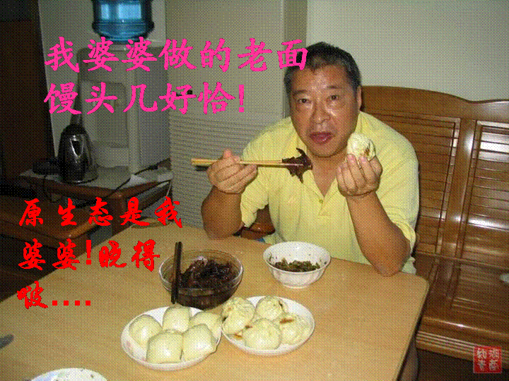 原生态:老面馒头是不是碱重了?颜色有点黄。这在我们食堂叫“军品”。