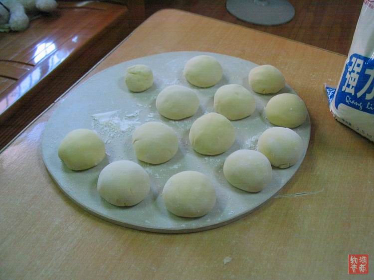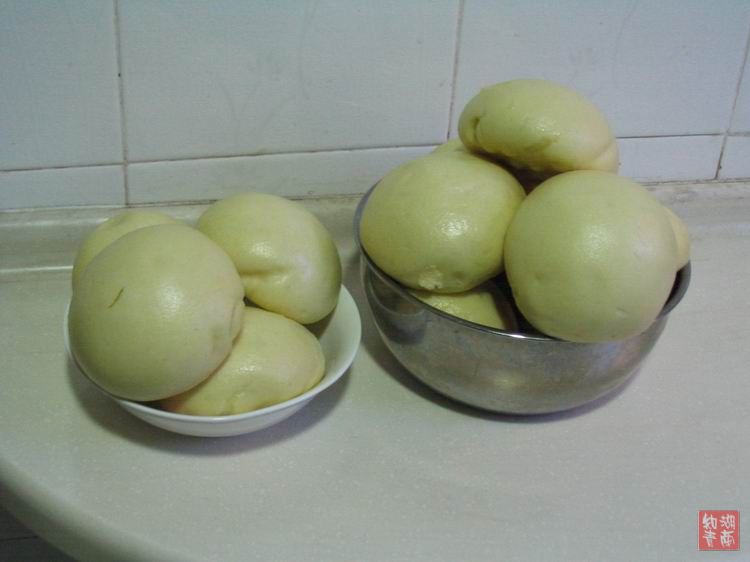 三、做馒头。1、用适量的水化开食用碱,水以刚好能全部溶化碱为好。然后均匀地洒在面团上,反复在盆中揉匀揉透揉熟(盆中主要是把碱和匀)。2、打开面板,先在面板上洒一层薄薄的面粉,然后把盆中的面团放在板子上开始揉面(板子上加面粉揉主要是使面团的软硬正好)。3、将揉好的大面团分成所需大小的若干个小面团。然后再铺点面粉在板子上,分别一个一个地揉。揉时要注意朝一个方向揉,揉成圆馒头形状放在板子上就别动了(揉小面团主要是保持形状,增加层次和筋力)。放之前要注意铺点面粉,防止沾板子。4、将成形的馒头放置20分钟左右,这个过程叫“醒面”。
