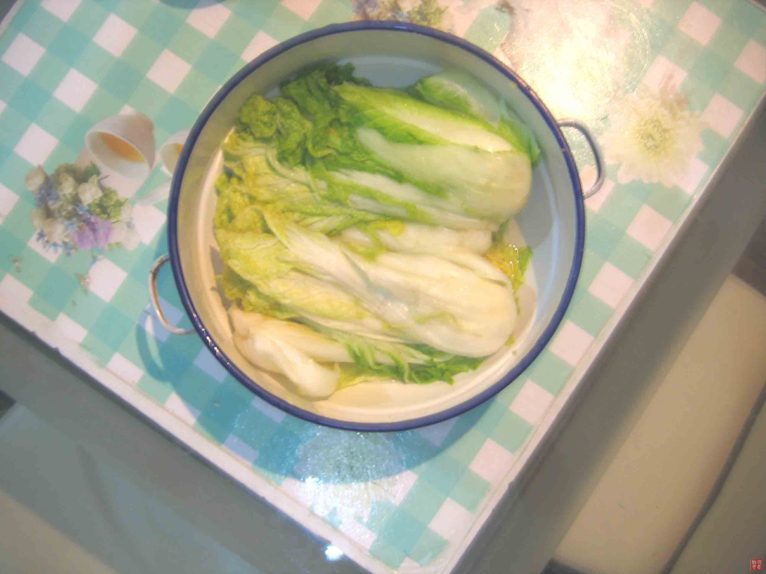 4。步骤;A 买来大白菜一劈两半,用盐腌渍透,约6小时