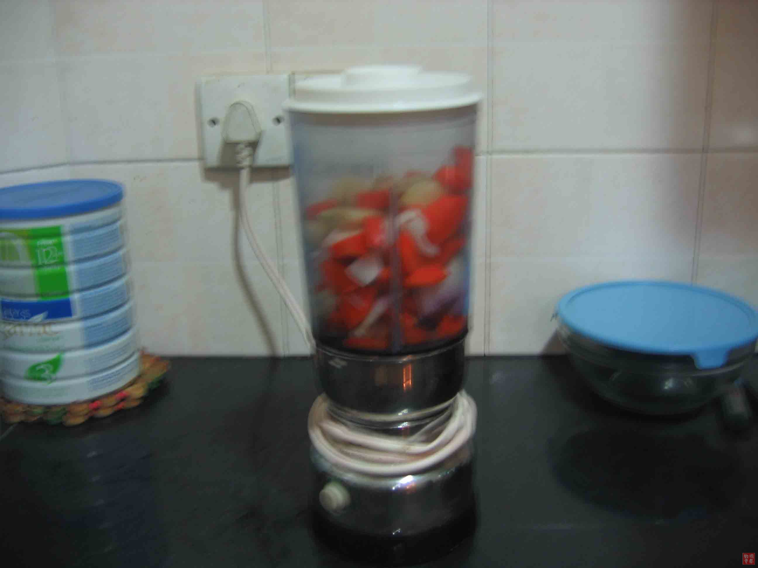 C 将辅料切丁,加白糖1勺 鱼露5勺,放入搅拌器打成茸