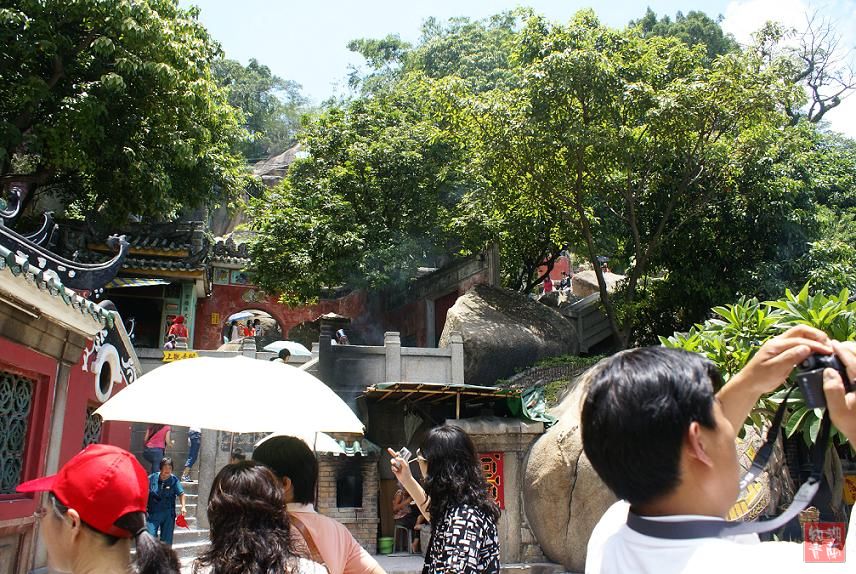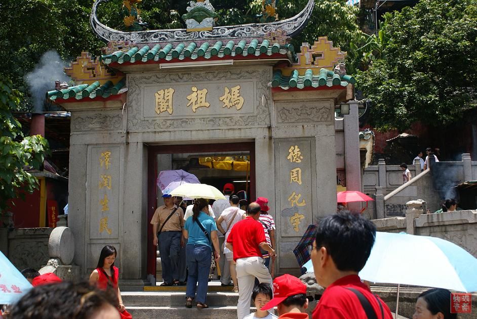 还有以妈祖为地名的,如天津的天妃闸、福建的马(妈)祖岛、台湾澎湖马公(妈宫)、澳门原名妈阁等。每逢农历三月二十三日妈祖生日,庙宇内外,人山人海,香火鼎盛。 湄洲祖庙庙后岩石上,有升天古迹”、观澜”等石刻。站在石上,顾盼茫茫大海,白鸥掠波,舟揖穿梭;水中有山,山外有海,山海相衔,海天相接。庙前岩岸海床有大片辉绿岩,受风涛冲蚀,形成天然凹槽,潮汐吞吐之声,由远而近,初似管弦细响,继如钟鼓齐鸣,再若龙吟虎啸,终则象巨雷震天,骤雨泻地。扣人心弦的湄屿潮音”因而驰名。