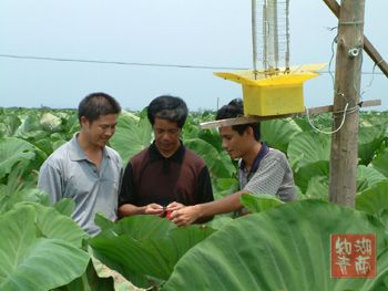 现在的農業第一綫,基地用频振式杀虫灯杀虫。