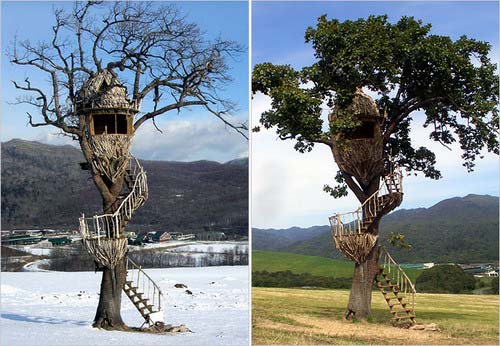 建在离地面好几米的高空中的房子,你可以说它前卫怪异、诙谐有趣,也可以说它狭小简陋、不甚方便。但是,也许有一天,房价高到离谱的时候,选择住到树上会是个好办法。