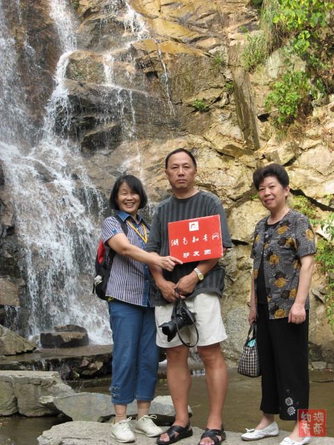我以前不认识周姐,也从没在网上看到过与周姐有关的信息(听说,周姐孙子在手,一天到晚忙不过来,没空上网,而我上网只几个月,很少浏览其他版块),第一次知道这个名字,是前几天的一个催订票的帖子中。然而,到郴州第一眼见到的,就是手持《湖南知青网驴友团》来迎接我们的周姐。以后的几天中,她不顾自己刚刚好转的脚疾,冒着三十八九度的高温,放下繁杂的家务和亲爱的孙子,陪着我们爬王仙岭,去五盖山,还帮我们买火车票,带领我们找汽车站、联系车子,忙前忙后,一刻都没有得闲。看那热情,看那架势,谁能想到,她竟是高我两届的长沙市一中的学姐,已经62岁了呀!
