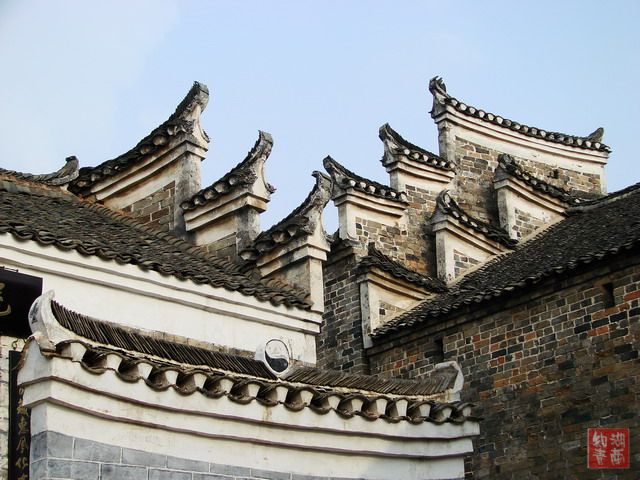古村民居飞檐翘角,外部都有高高的马头墙颜色呈灰色