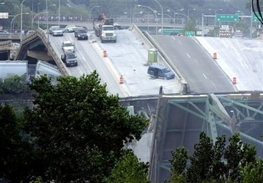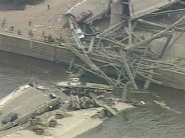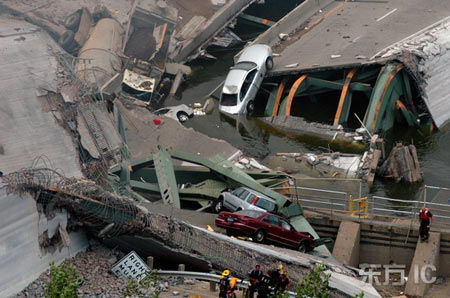 美国密西西比河桥坍塌造成至少7人死60人伤(组图)<--标题结束--><--副标题开始--><--副标题结束-->