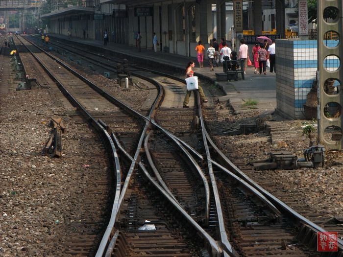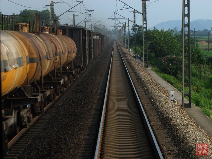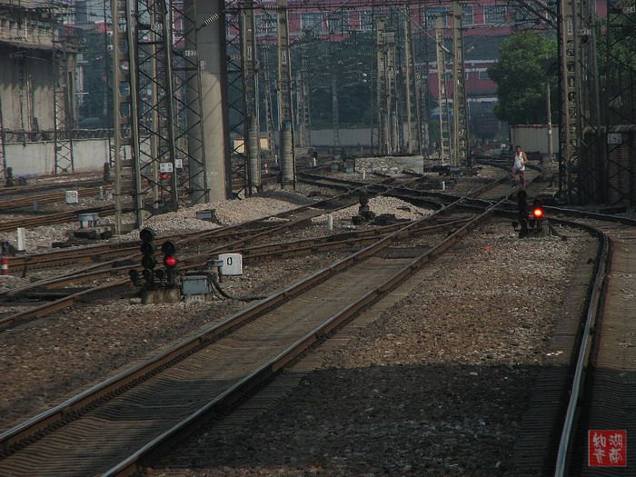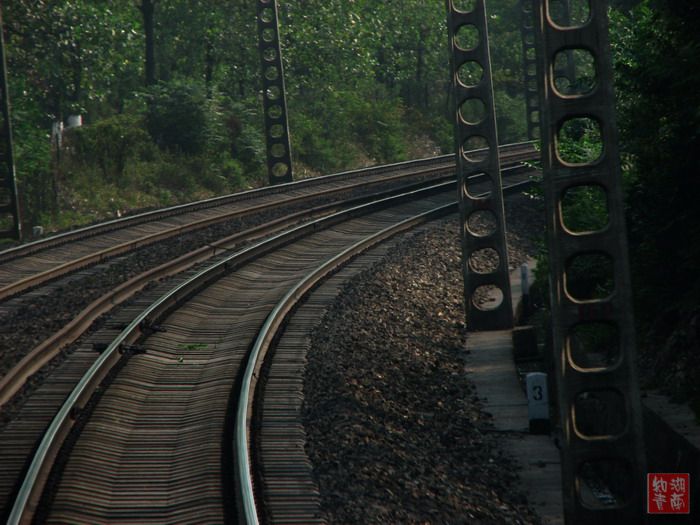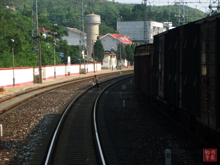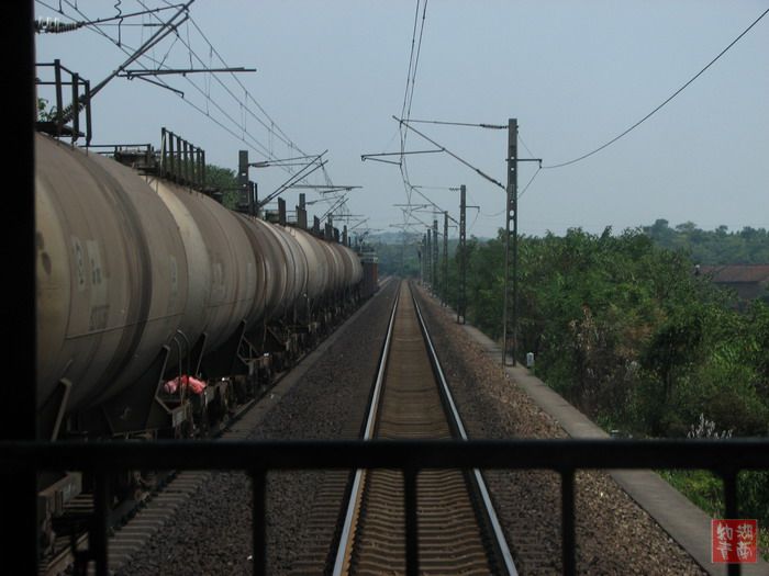 从长沙到郴州,我们坐的是一号车厢,在同车人中率先进入郴州。从郴州回长沙,我们坐的又是一号车厢。不过,一号车厢成了这列车的尾巴。于是我们获得了一个难得的机会:从车尾拍拍摄我们刚刚驶过的铁道。