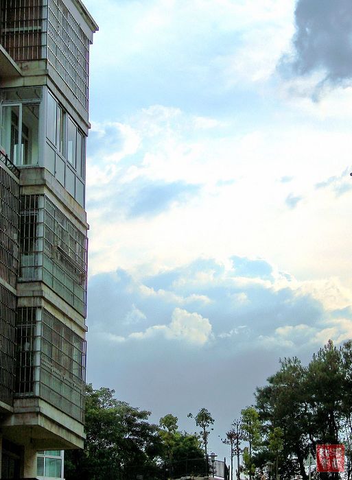 今天天空兰天白云十分美丽,和大家一样都拍下了这难得见到的好景象,贴上几张与大家分享。