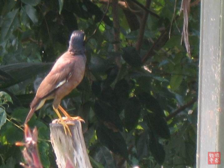 我在马来西亚太子城的广场上也拍了张鸟,是八哥?搞不太清。鸟的表情没彭兄的好,大概外国鸟冒得中国鸟亲切;摄影技术没彭兄的强,一定是住在城乡结合部的人冒得住在城里的人聪明!