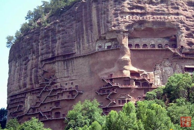 麦积山 和山的形状有关。《太平广记》、《玉堂闲话》称:麦积山“高百万寻,望之团团,如民间积麦之状,故有此名”。《方舆胜览》也称麦积山“状如麦积”。