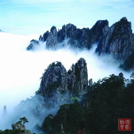 三清山 因山中玉京、玉华、玉虚三峰犹如道教所尊崇的三神仙列坐其巅,故名。