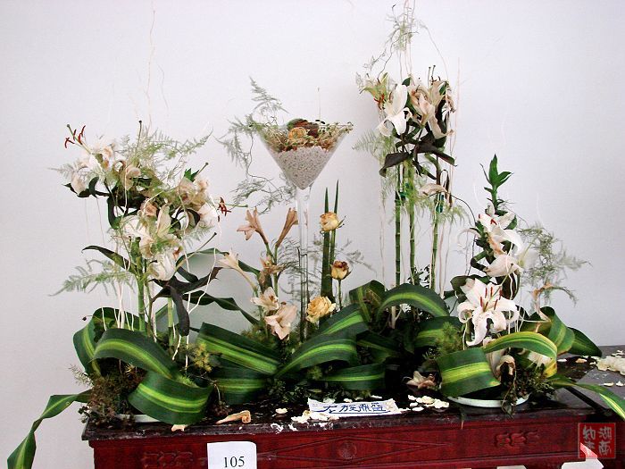 这是今年六月在烈士公园参观了一次插花艺术展览,在参观时拍摄的,因人多,只注重拍,而未记住每件艺术品的命题,很是遗憾。现贴在家园,与网友们分享。