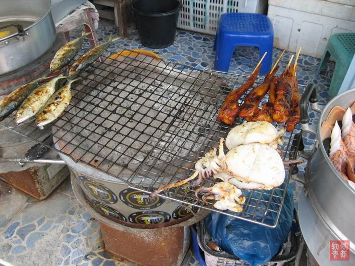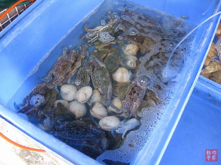 怎么样,新鲜吧?我们在这里也吃了一餐被旅行社号称为的“海鲜大餐”的海鲜,蟹一(连绑蟹的橡皮筋还缠在蟹上,没有解下)、虾一、烤海鱼一(不新鲜)、玉米棒一,如此而已。