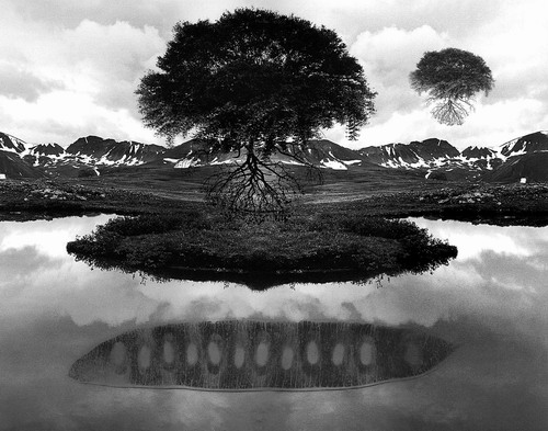 杰利·尤斯曼(JerryUelsmann,1934年生)是20世纪60年代在美国占主流地位的“非纪实”类摄影的先锋,“成像后(再合成)”摄影的开创者,被称为“影像的魔术师”。他的作品不是照相机直接拍摄完成的,而是经人工编辑后对自然世界的抽象表现。弥足珍贵的是,在使用电脑即时合成图像为时尚的今天,尤斯曼依旧不改初衷地采用传统的暗房技巧,即通过多架放大机将不同底片上的影像叠合在一张画面上,从而形成“纯手工蒙太奇”的艺术图像。“我从黑白照片里找到了属于我自己的‘声音’,这种感觉让你觉得自己与‘真实世界’仅一步之遥。”今年的6月2日,尤斯曼如是向读者解释。