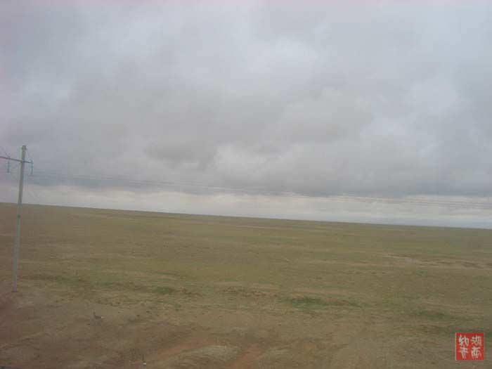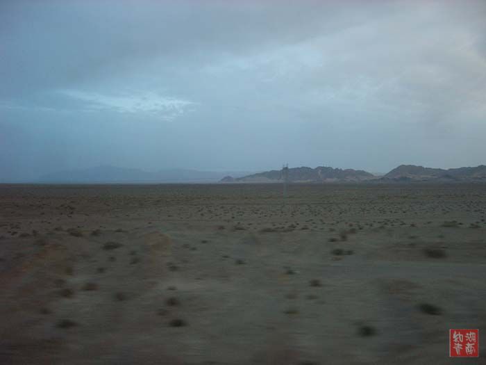 8月5日一早起来看车窗外,是黄土色的极为宽广的荒原。荒原上,东一蔸西蔸,稀疏地长着一些据说是标志着草原退化的不知名的草。极远处是沉默的群山,光秃秃的,也是土黄色。这样光秃的山在南方早已水土流失得不成样子。不过在这里也许不会,因为这儿雨水肯定极其稀少。如果雨水多,这荒原上就会长满绿草。看看带的高度计,海拔在3300米上下。问列车员。还没到格尔木。火车在青海境内还有很长的路要走。