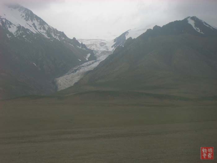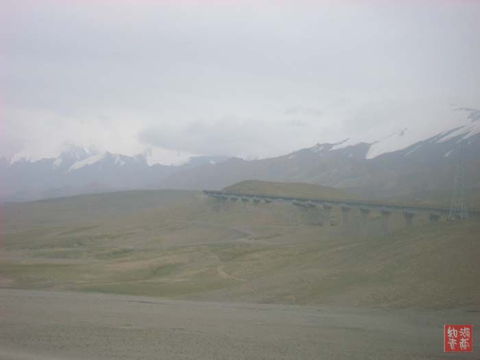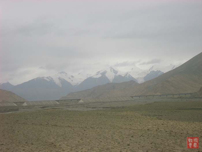 10:20,我们看到了第一座雪峰:昆仑山中海拔6178米的玉珠峰。我们最先看见它是从列车的右边窗,但后来它到了我列车的左边。可见我们的列车曾在玉珠峰前左右转着弯向前开。在过后的二十分钟时间里,我们在列车的左边都能看到玉珠峰。当然,我们只看到了玉珠峰山体中、下部的冰川,而没能见到峰顶。因为玉珠峰的峰顶隐藏在浓密的云层之中。后来我们又经过多处雪山,情况和玉珠峰都差不多,浓密的云雾使我们不容易看到雪山的尊容。
