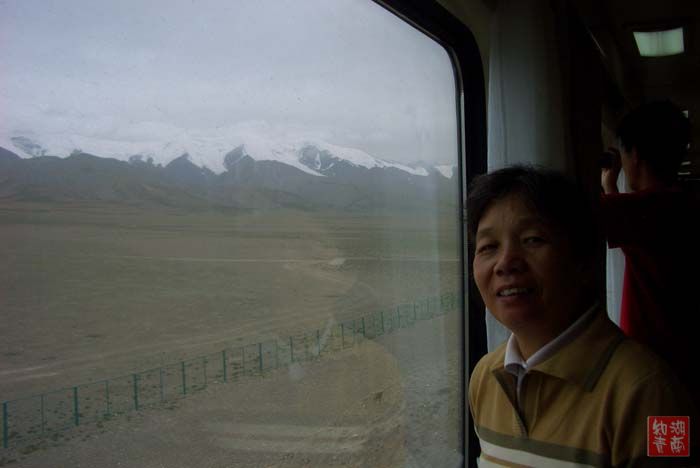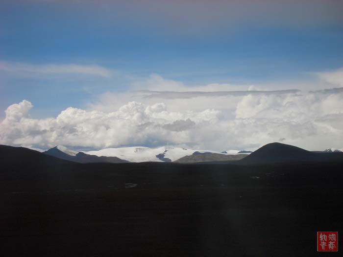 接近唐古拉山的时候我们又见到了雪山。远处有一座峰顶浓云遮盖着的雪山我从地图上方位判断是格拉丹冬,但只是瞎猜猜,列车员没有象看到玉珠峰时那样进行介绍。