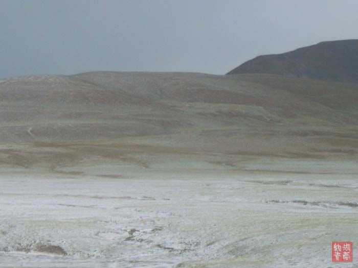 火车在格尔木停了二十分钟。8:40,火车离开格尔木。离开格尔木后高度不断爬升,不久我们进入了昆仑山中。我的高度计这时显示我们已行驶在4500米至4800米的高度上。整个白天,我们的行驶高度一直没有低于4500米。虽然是行驶在世界上最高的山脉之一的昆仑山中,但我们却并没有感到这里的山有多高。我想这不但是因为我们所处的地面已经很高,也因为那些似乎就在草原那一头的高山其实离我们还很远,当然也就感觉不到它高了。处在近5000米的高度上我们也没有不舒服的感觉,这可能与过格尔木以后车厢内已开始供氧有关吧。