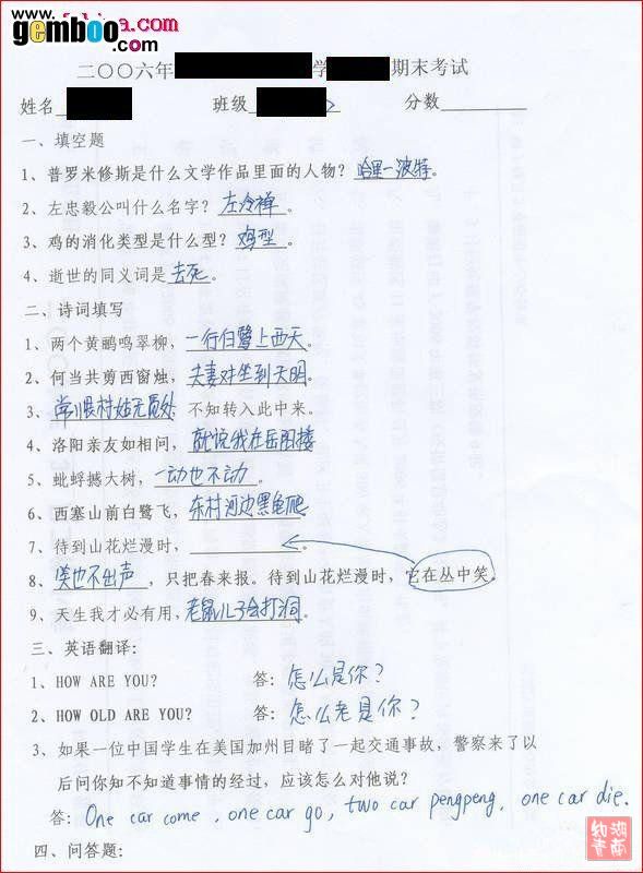 我教书时,也见过看了啼笑皆非的答题,但这么题题文不对题的试卷还是头回看到。