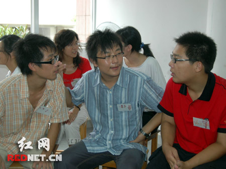 8月22日下午,湖南大学天马学生公寓,一群即将成为大一新生军训期间“学长辅导员”的高年级学生,在这里进行团体培训。他们接受心理辅导老师的各种培训。